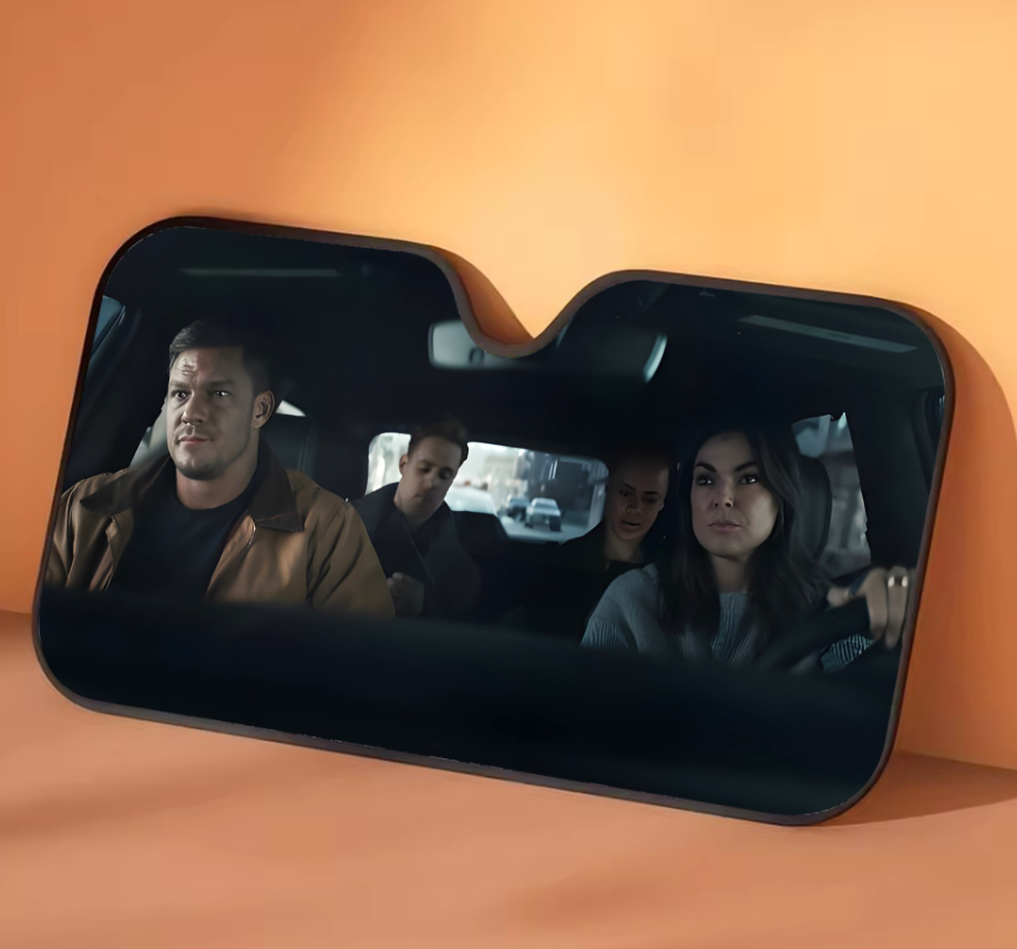 Turn every parking spot into a scene straight out of Reacher! This unique windshield sunshade features Jack Reacher and cast riding shotgun, giving your car a bold and cinematic look while protecting it from the blazing sun.